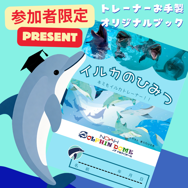 ご参加いただいたお子さまには、もちろんトレーナー手作りのオリジナルブック『イルカのひみつ』(全14ページ)をプレゼント!